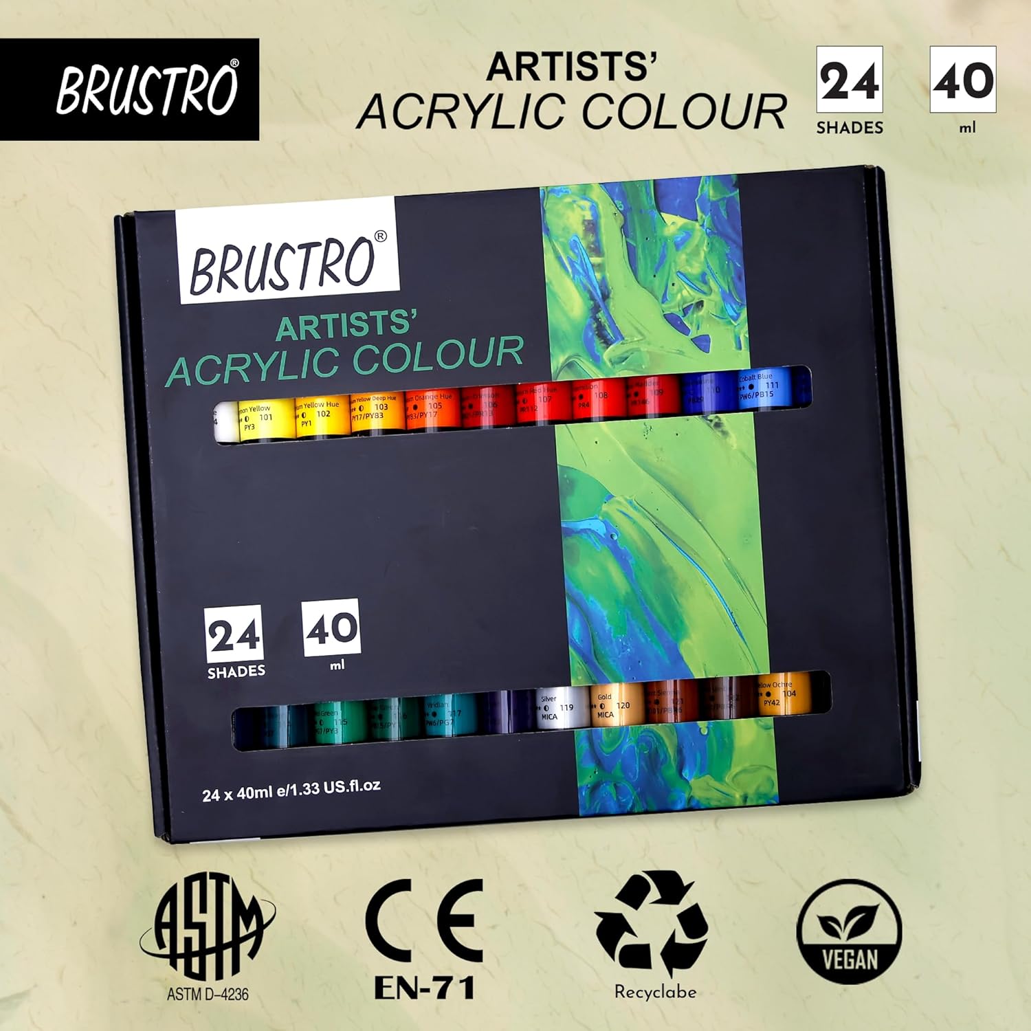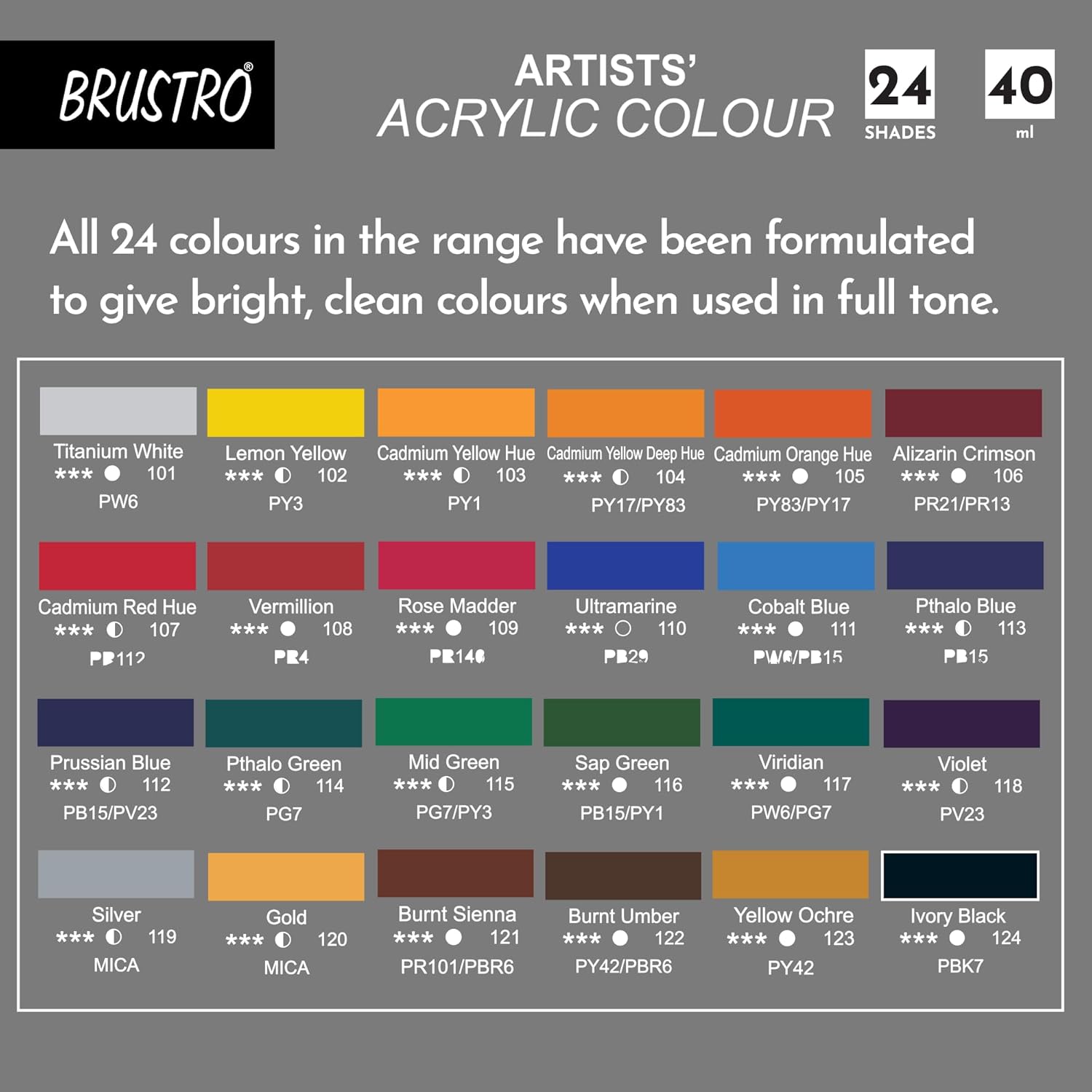 BRUSTRO Artists Acrylic Colour | Set of 24 | 40ml Tubes