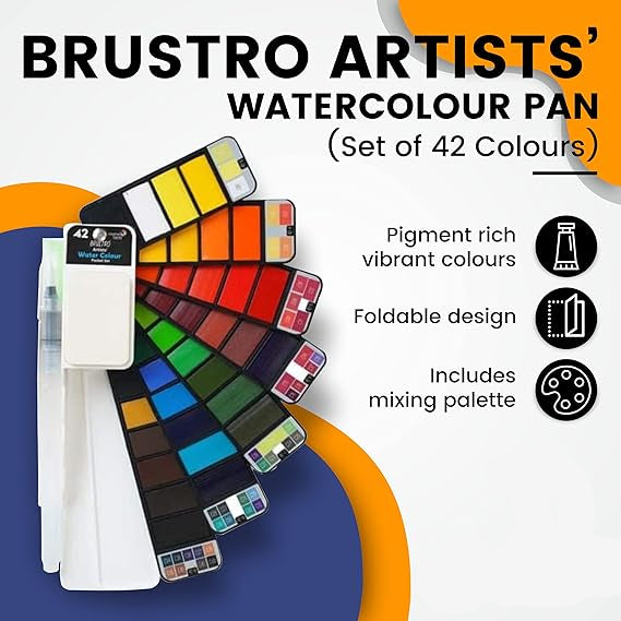 BRUSTRO Artists Watercolour Travel Pan | Set of 42 Colours