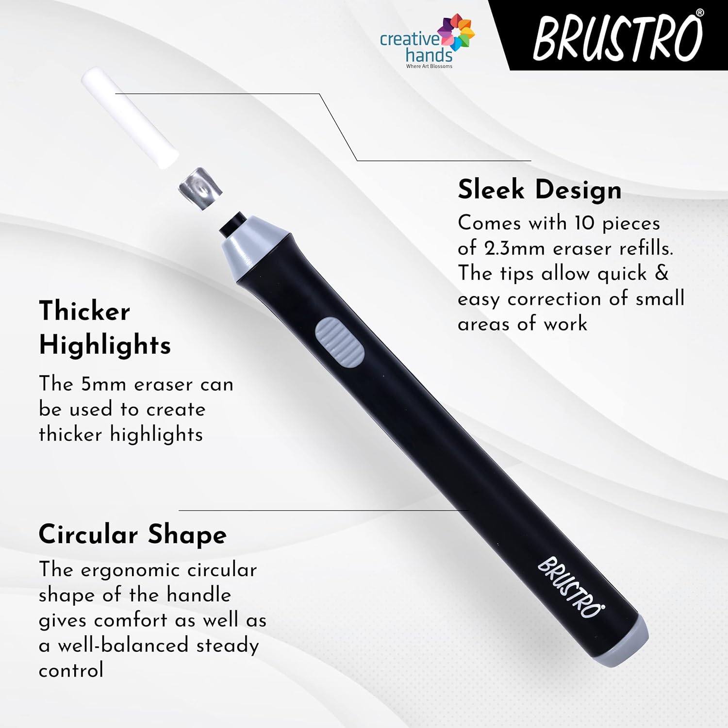 BRUSTRO Electric Automatic Eraser | Slim Battery Operated | 2.3mm, 5mm| 22 Refills, 2 Eraser Holders | (Batteries not Included)