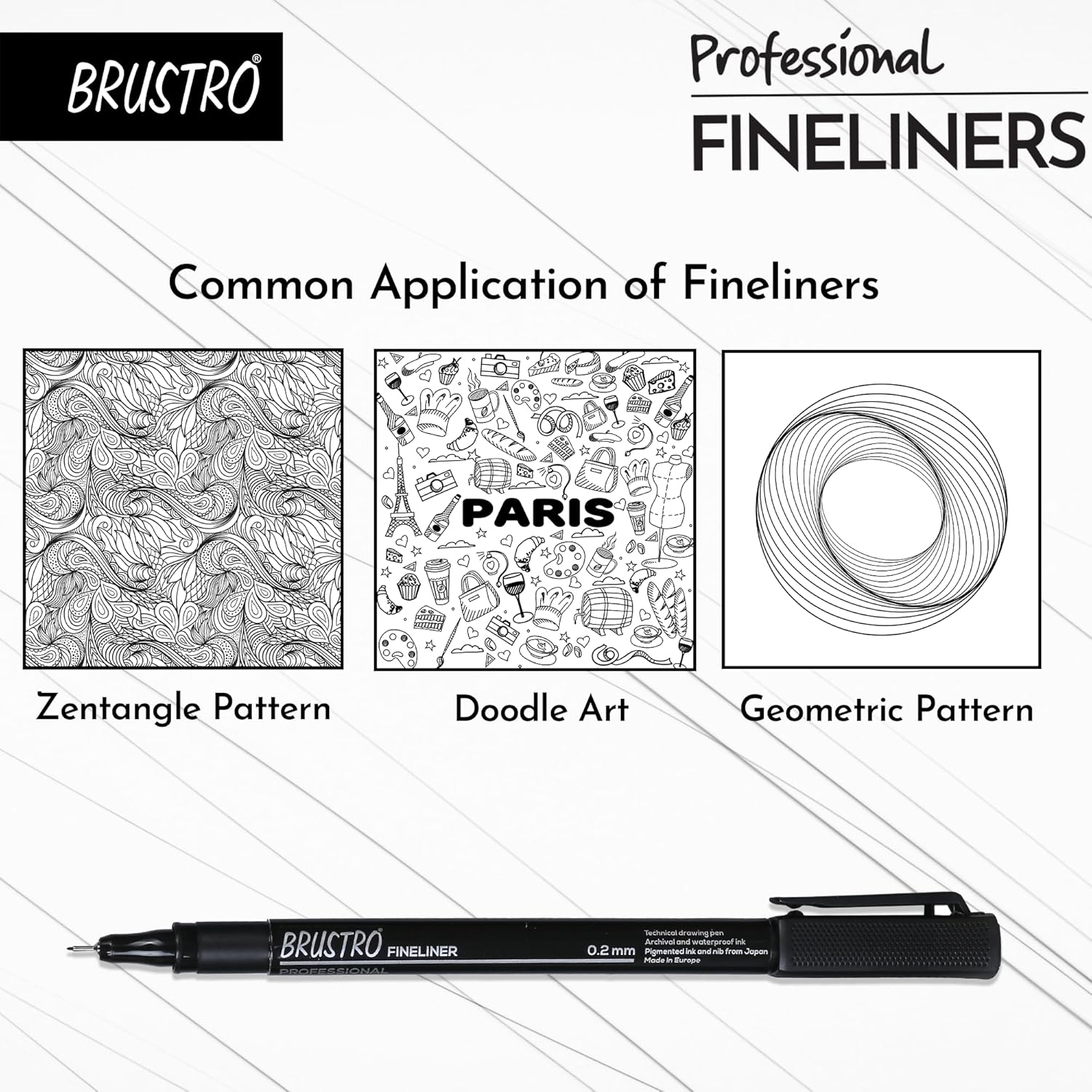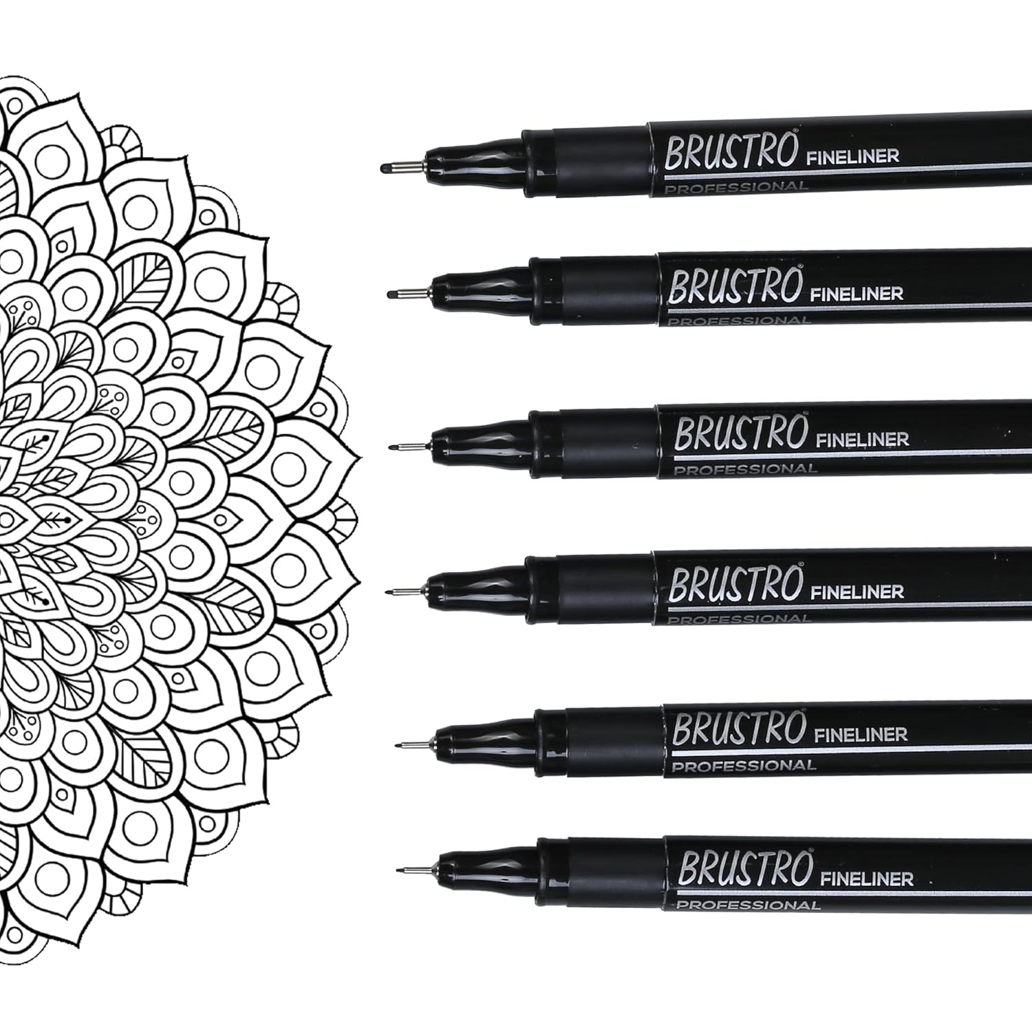 BRUSTRO Professional Pigment Based Fineliner Pen | Black | Set of 6 |