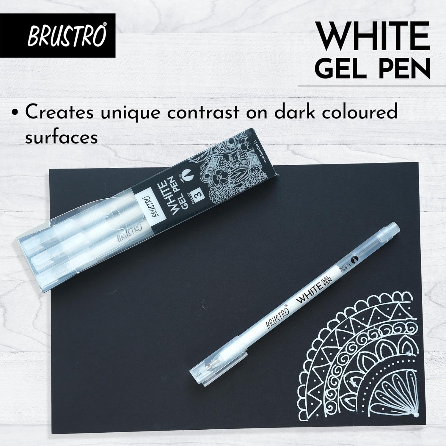 BRUSTRO White Gel Pen | Tip size -1 mm | Pack of 3