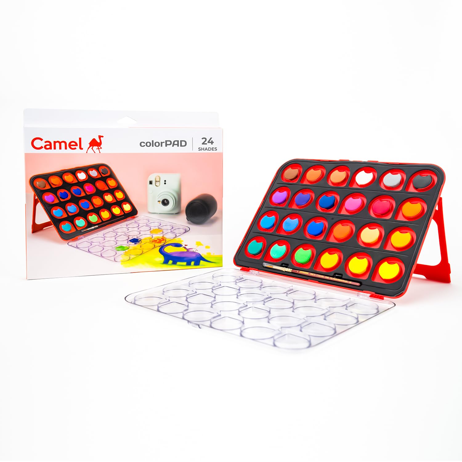 Camel ColorPad Watercolor Cake with Paint Brush | 24 Shade Set | Vibrant Colors | Portable Design