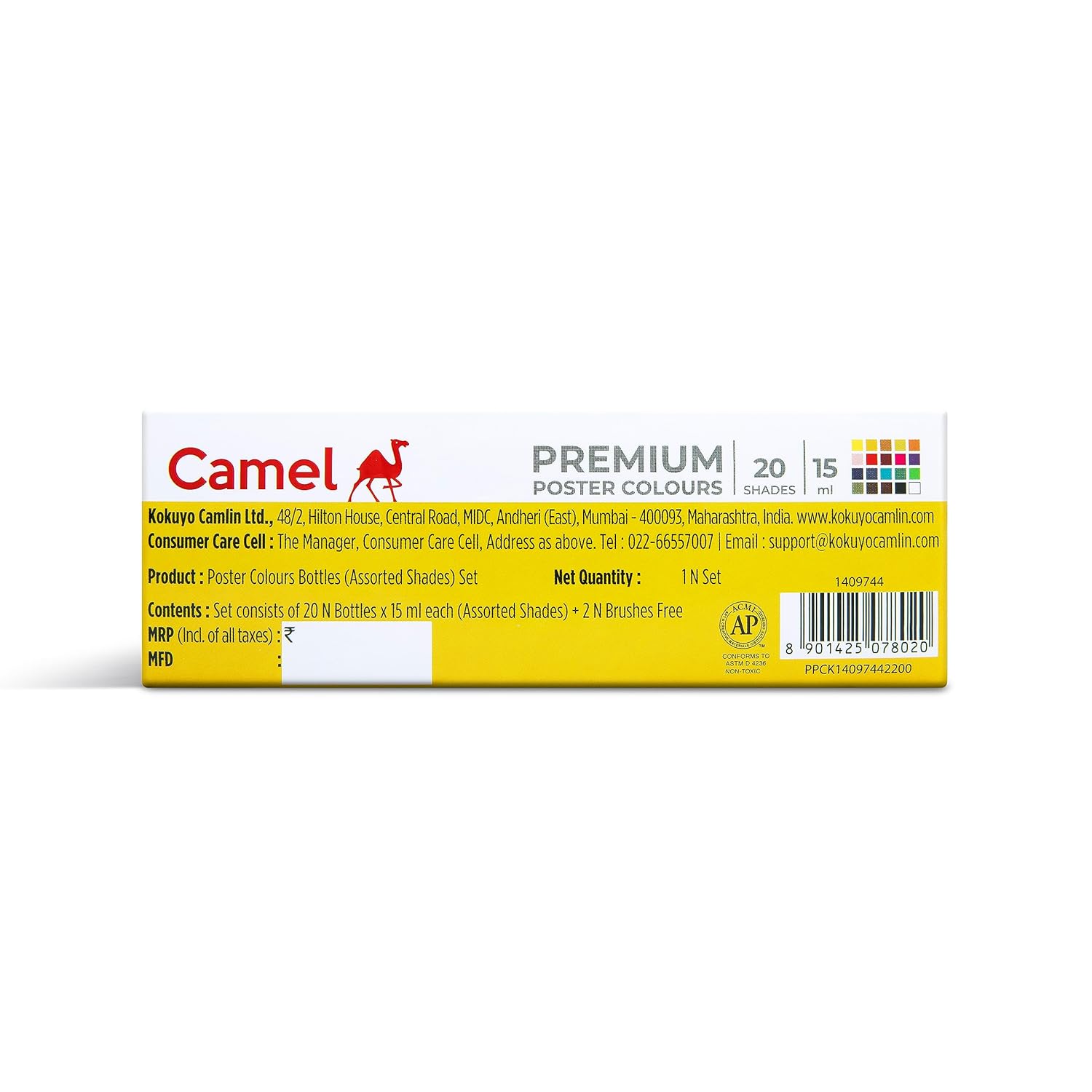 Camel Premium Poster Colour Set with Brush | 20 Shades | 15ml