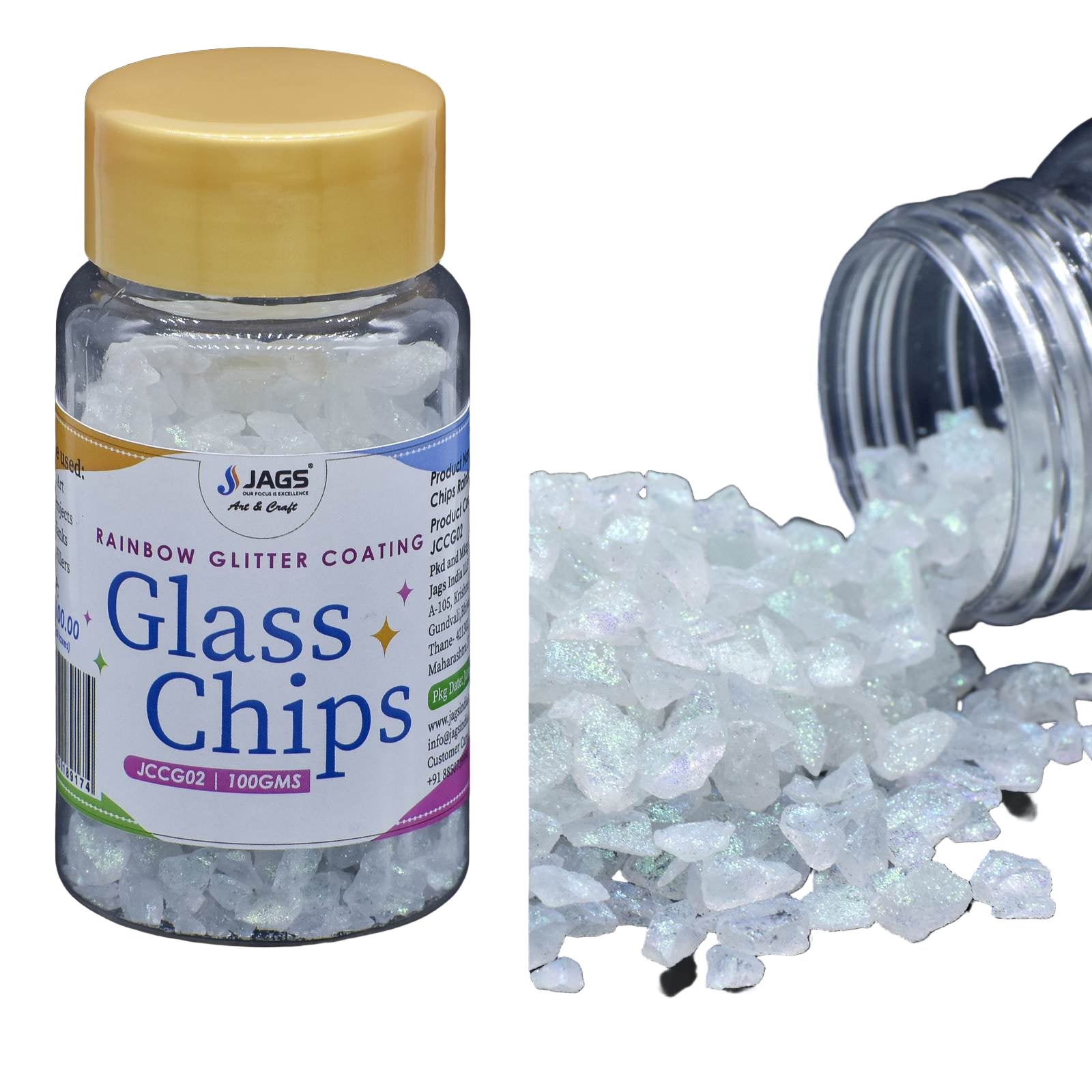 Jags Colour Coating Glass Chips | 100 Gram | Rainbow Glitter