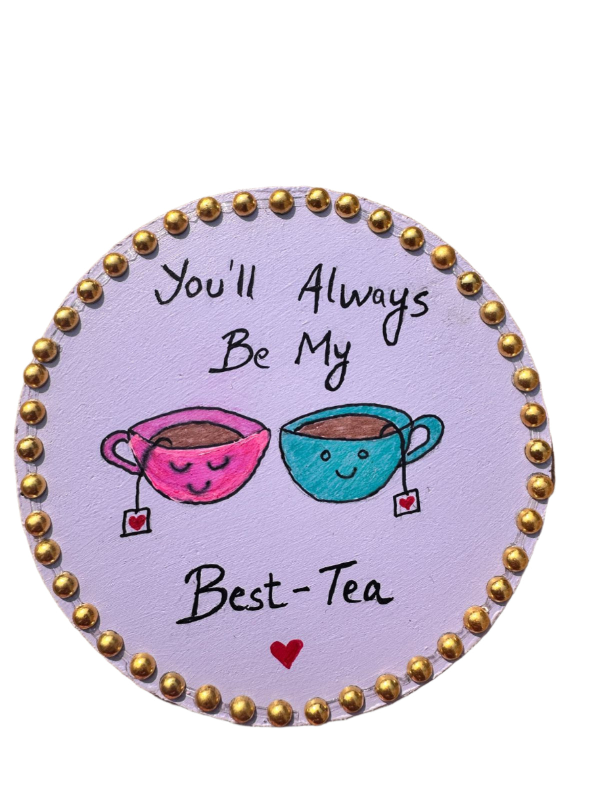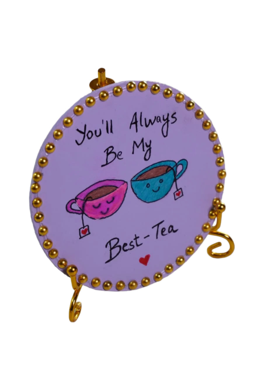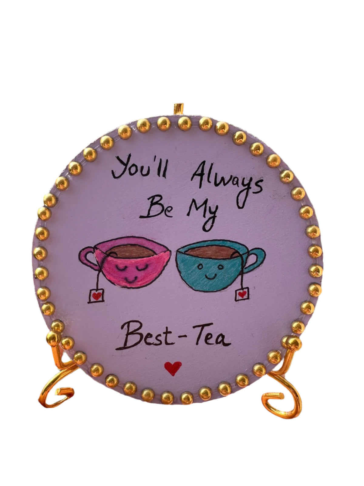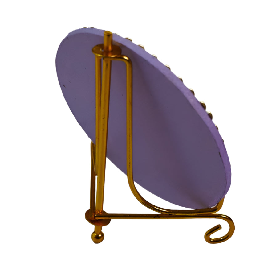 Round MDF Painting | Handmade Mini Painting with Metal Golden Easel