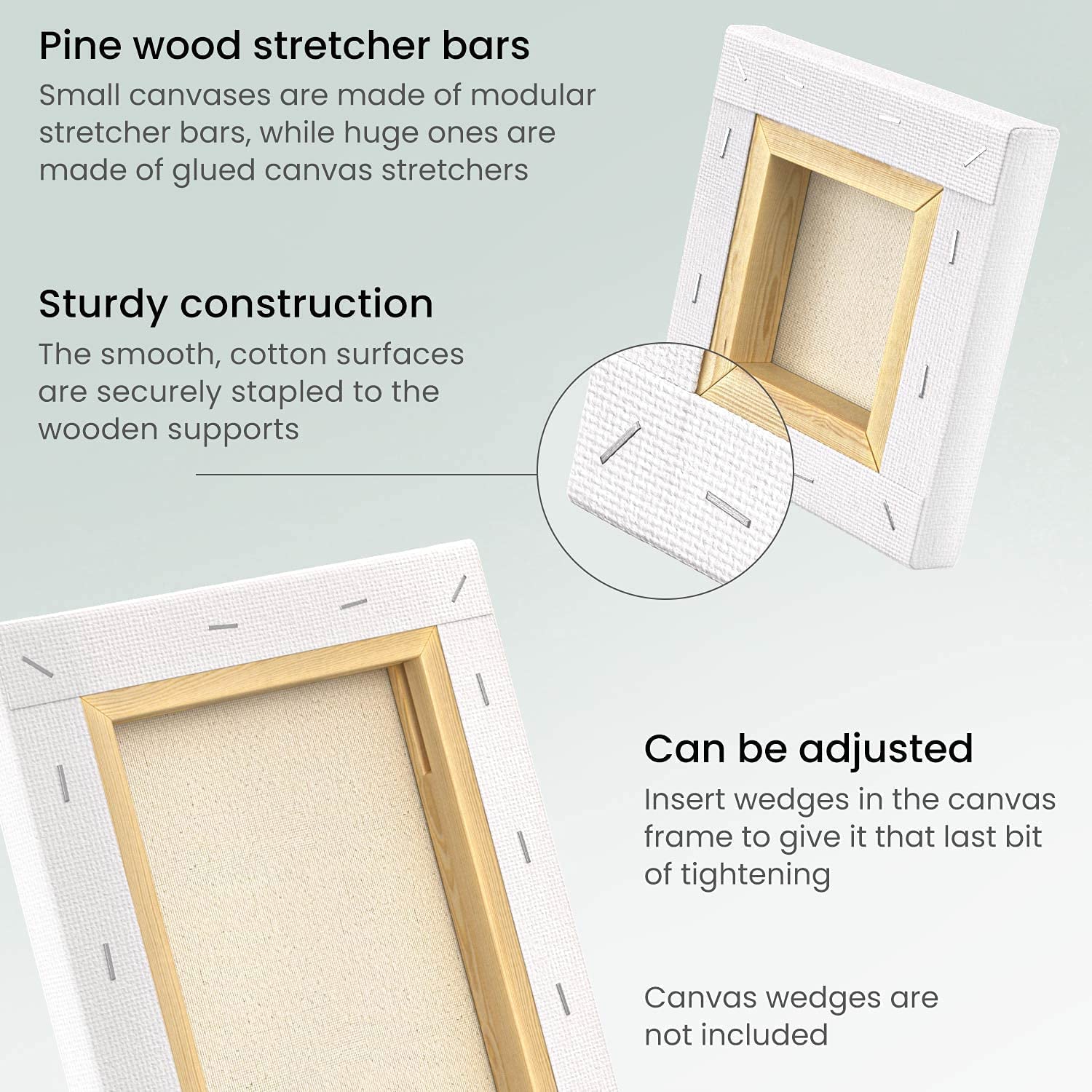 - Bring your art to life with these natural pre stretched cotton canvas, that allow easy gliding of colors and brushes over the surface to give your painting a natural and larger than life feel.