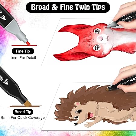- Touch cool Alcohol Markers Professional Art Set - Dual tip Alcohol Based Ink Colors with Fine and Chisel Tip. Perfect for Artists Beginners Adults and Kids - Marker Set 12